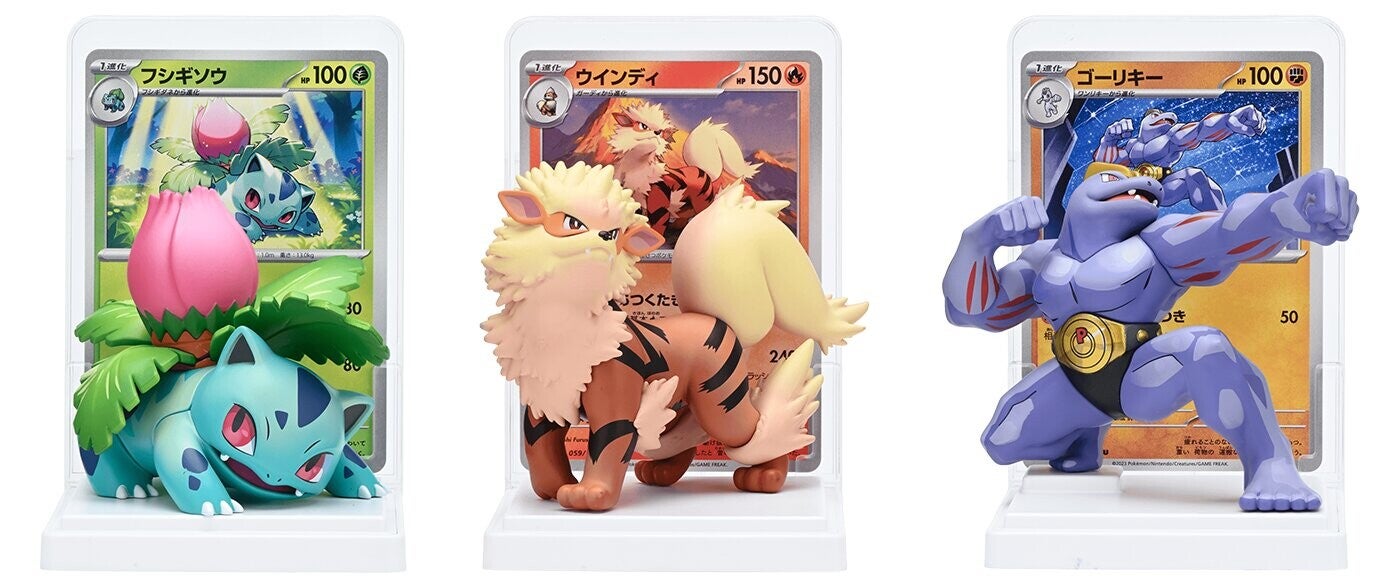 This product features a 3D figure of Pokemon Card 151 cards including it's card counterpart. The card itself seems to be a direct reprint of the set given the set number and rarity is included, so don't expect a new variant of numbering.