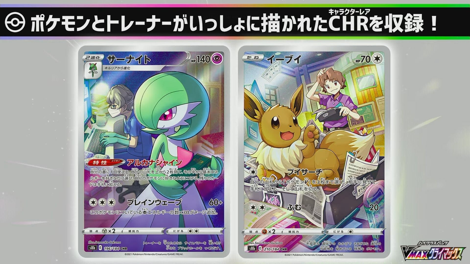 CHR (Character Rares) cards originally introduced in SM11b Dream League are returning. These are reprinted cards with new (full art) artwork along with a character/trainer and the Pokémon.