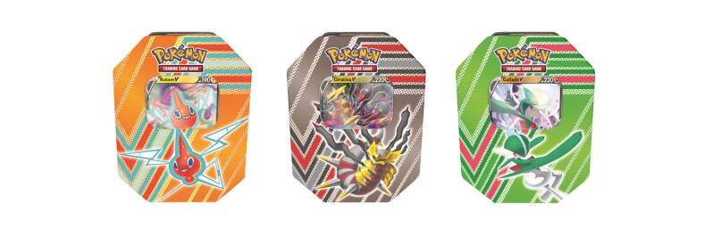 We now have obtained the product images of the upcoming Fall 2022 V Tins. It's called Hidden Potential Tin. The promos are Rotom V, Gallade V and Giratina V.